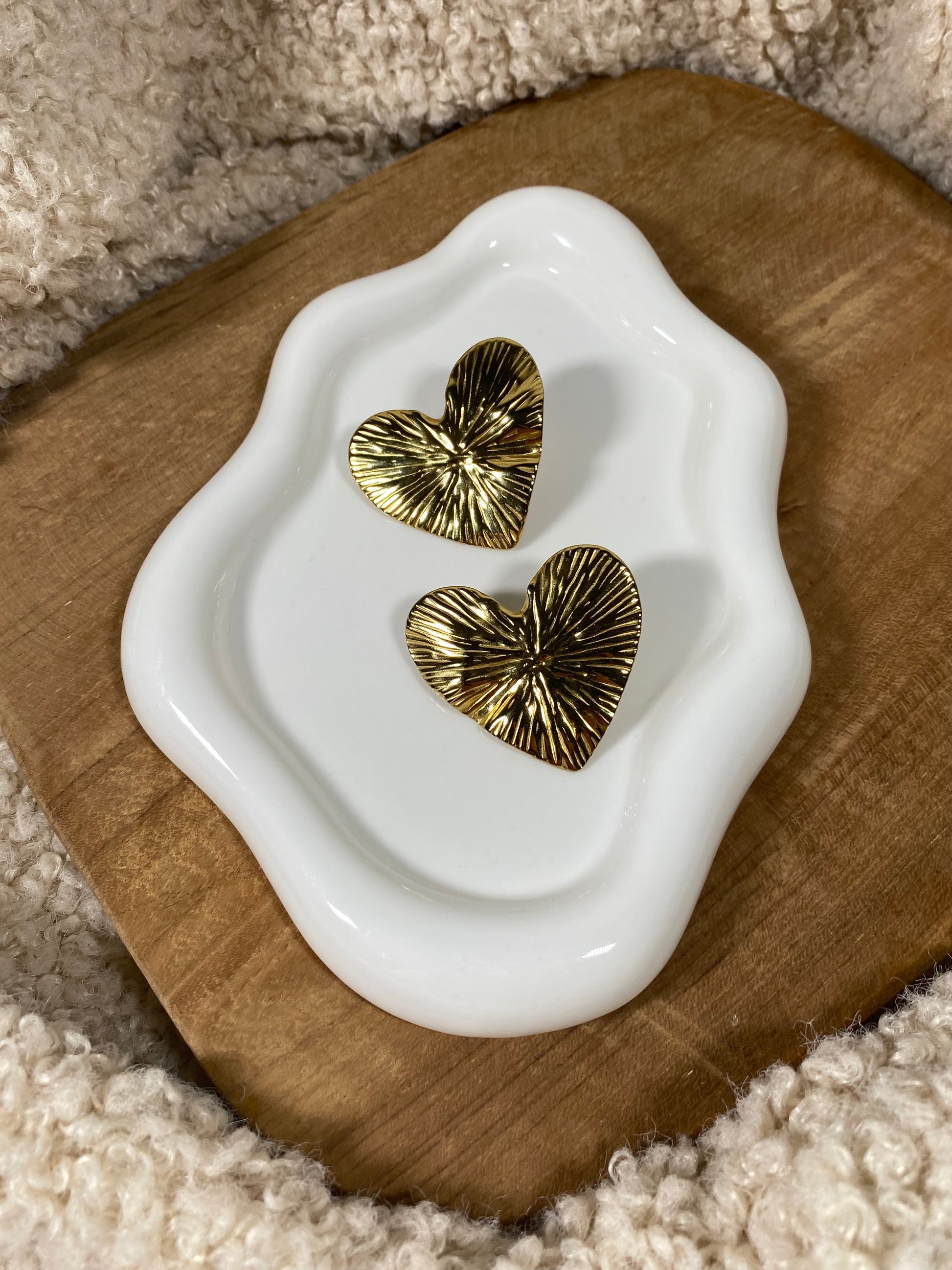 Boucles d'oreilles cœur aux lignes striées.