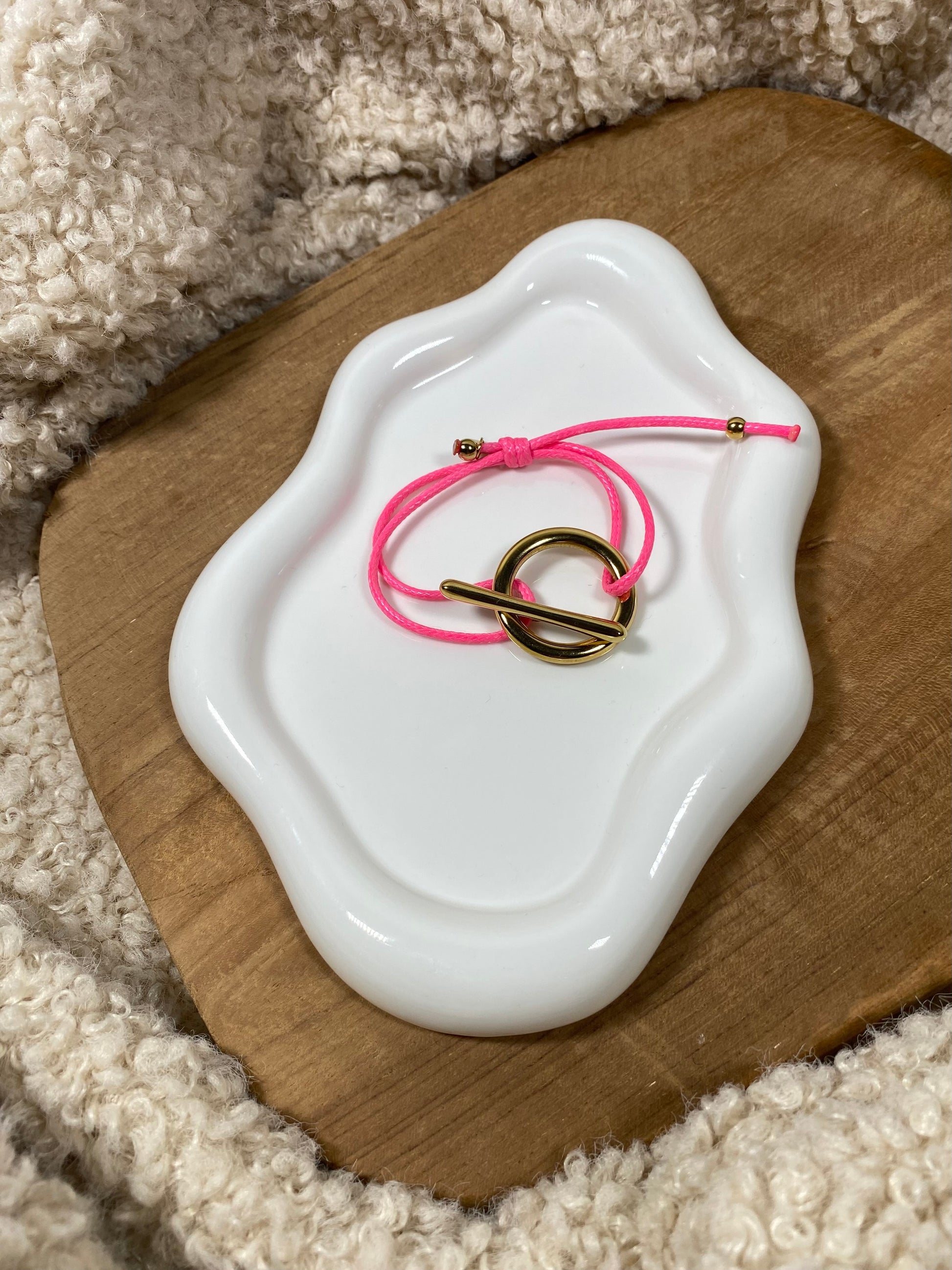 Bracelet réglable à l'aide d'un noeud coulissant.