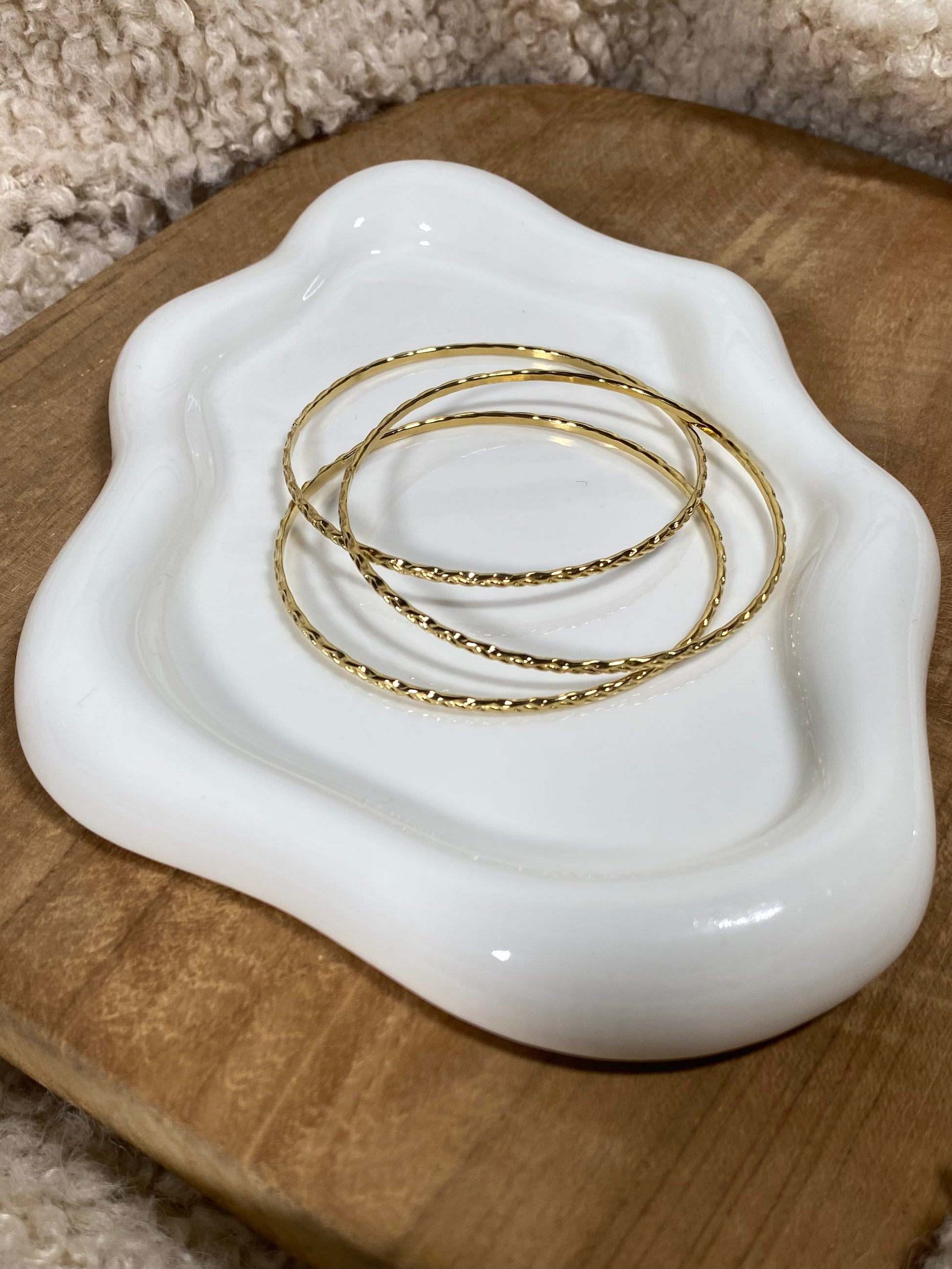 Joncs épurés avec lignes striées pour habiller vos poignets simplement.