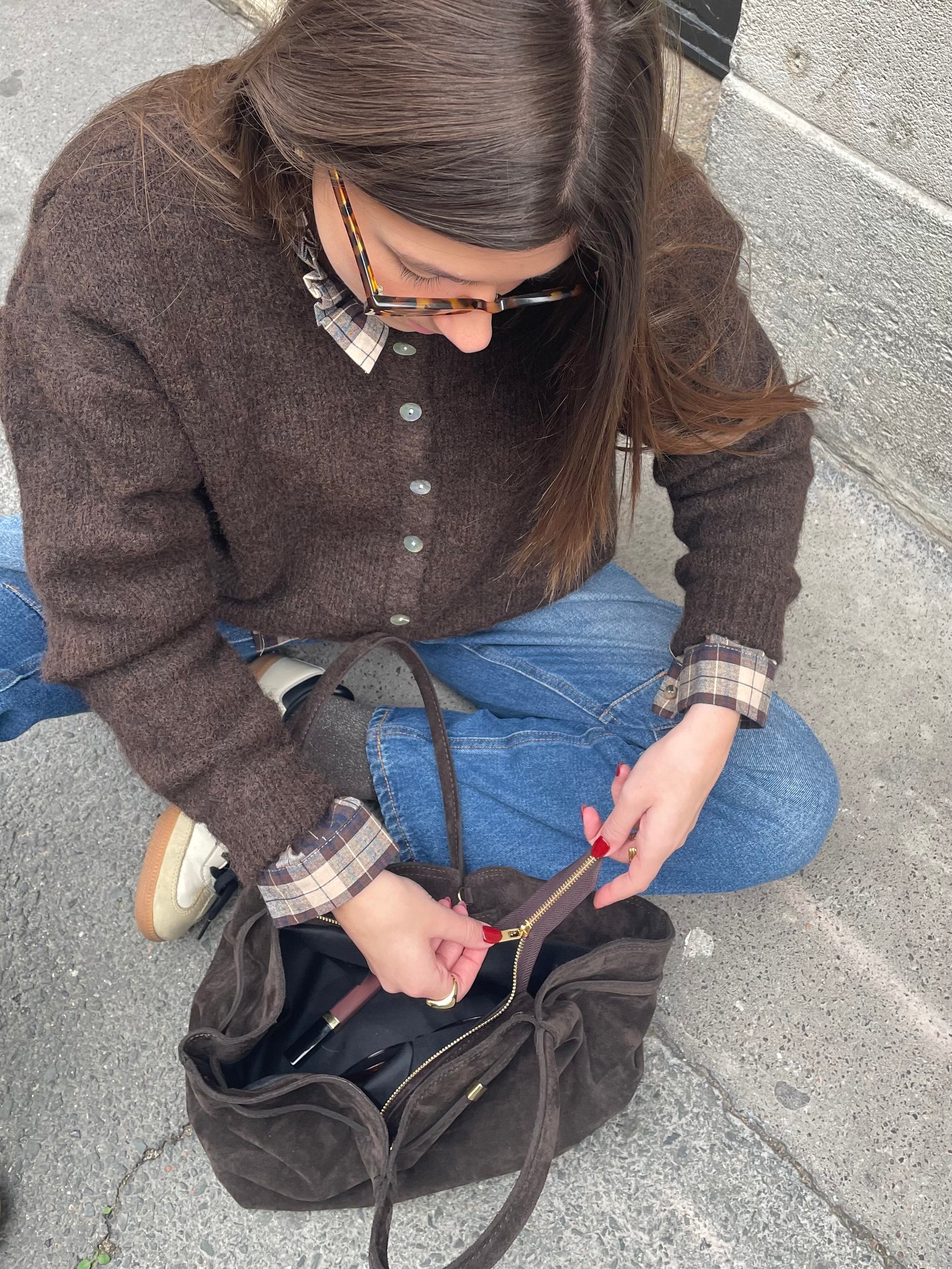 Le sac contient également une anse réglable en cuir qui se clipse à l'aide de mousqueton sur le sac.